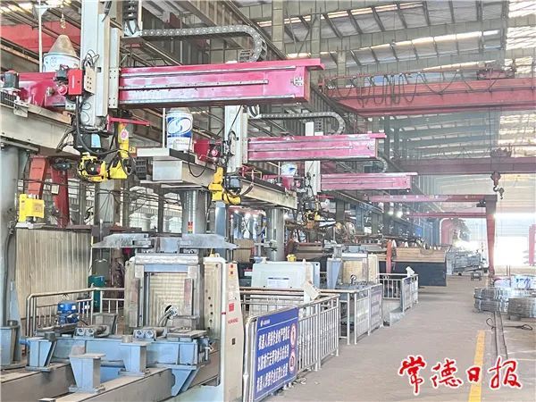 谭政东带着记者走进生产车间,机械人工作站格外打眼。机械臂上下挥舞,在空中划出一道道优美的弧线,一串串耀眼的电焊火花相继闪现,工件便严丝合缝地焊接在一起。“近两年,我们投入4000多万引进了3组箱体焊接机器人、4组支腿焊接机器人等新设备,生产效率得到大幅提高,生产成本也明显降低了。”